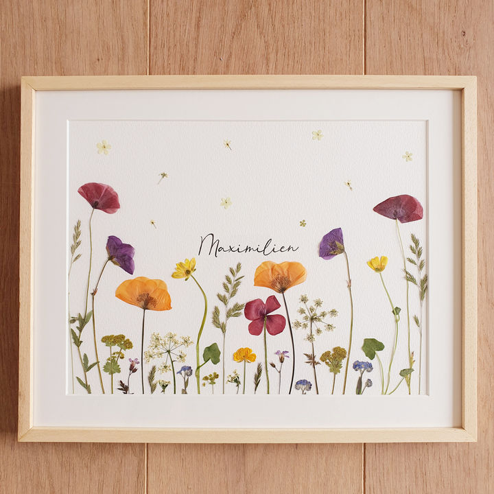 Un faire-part de naissance ou de mariage réalisé à partir d'un herbier est une création originale et poétique qui mêle l'élégance des fleurs pressées à la douceur d'un événement marquant. Chaque faire-part devient ainsi une œuvre personnalisée, où les fleurs et feuillages sont soigneusement sélectionnés et pressés, puis intégrés dans le design du carton d'invitation.